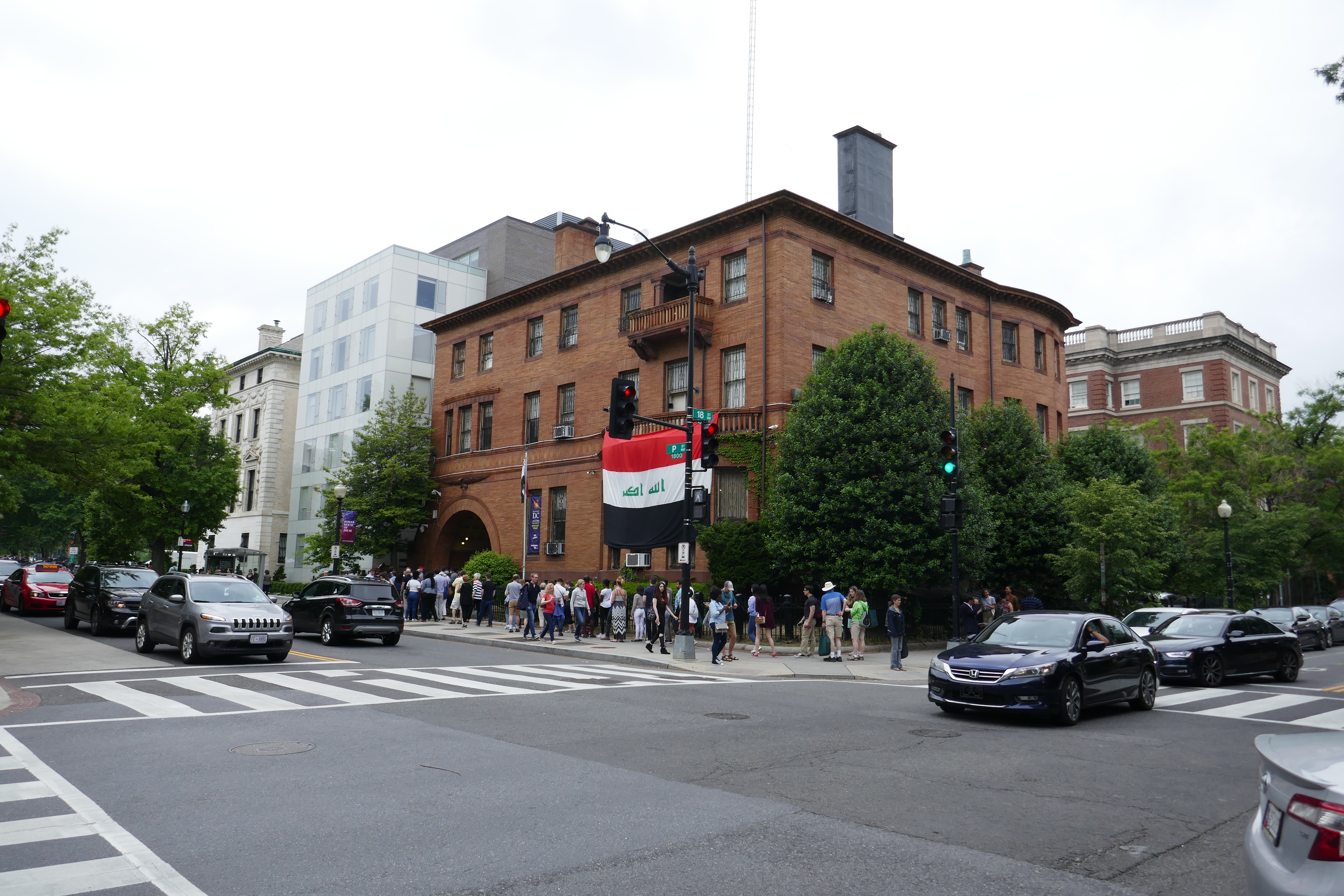 Across the intersection from the Iraqi Embassy. It was an embassy open house day, and many embassies had events. We went to the Iraqi Embassy as well as the Uzbekistan Embassy.